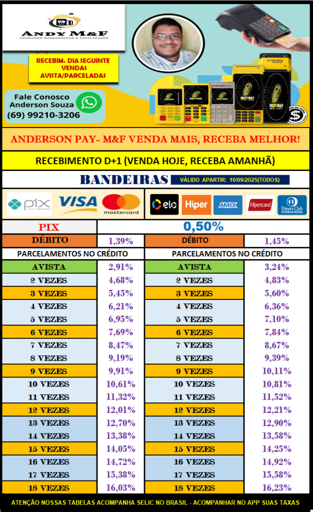Você recebe dinheiro da suas vendas na maquininha no Dia Seguinte, ou seja, Vende Hoje e Recebe Amanhã.(Já antecipado)